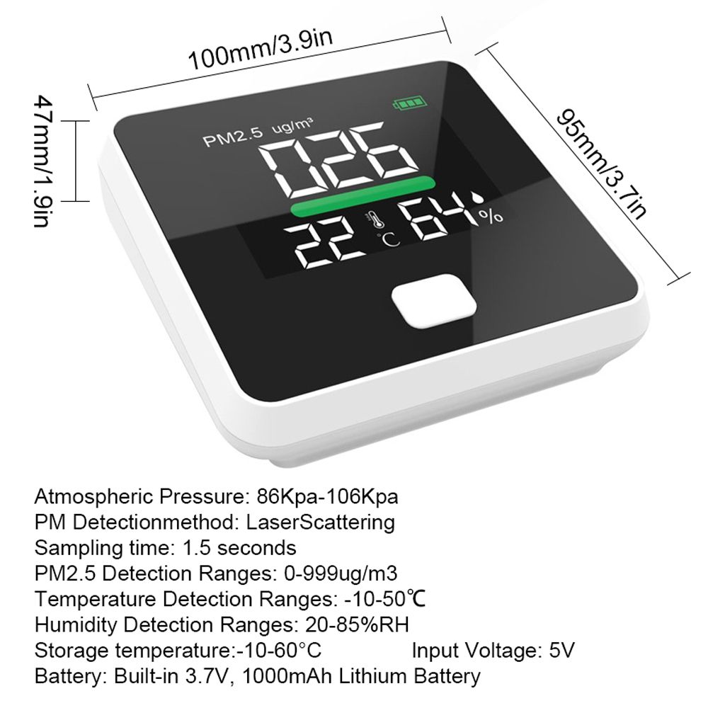 PM2.5 Detection Ranges: 0-999ug/m3