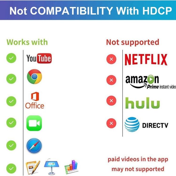 3.Compatible with PhoneX/8/8P7/7P/6s/6P,Samsung S8/ S8+/ S9/ S9+, Note8.Please plug in the power supply first before using the HDMI adapter cable. All mobile phone just need to connect the power supply of 5V1A. All ipad devices, must be connect 5V2A, otherwise you can't make it work.