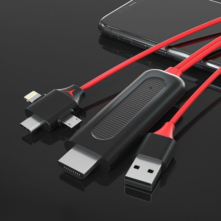 3 in 1 Android iPhone to HDMI TV same line Red Ordinary fund