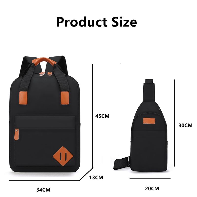 Include : 1 Main Laptop Backpack, 1 chest bag, 1 Purse.1. Concise and atmospheric three-dimensional bag, multi-layer design, large-function main bag + multi-function bag, scientific storage, layered storage of your belongings, so that you can travel worry-free.