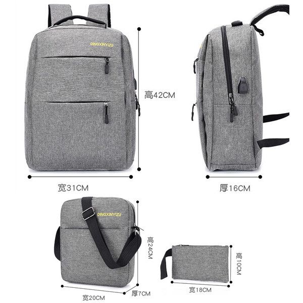 Include : 1 Main Laptop Backpack, 1 Crossbody Bag, 1 Purse.