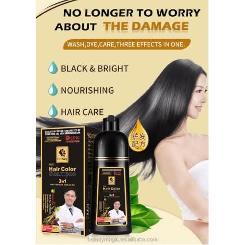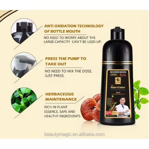 Buy 3 In 1 Black Hair Color Shampoo - Pure Plant Extract Natural Hair Dye 500ml in Nigeria