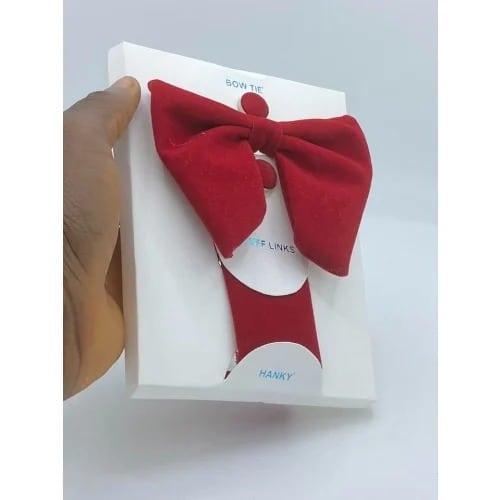 Buy 3-in-1 Bow Tie Cufflinks & Pocket Square - Red in Nigeria