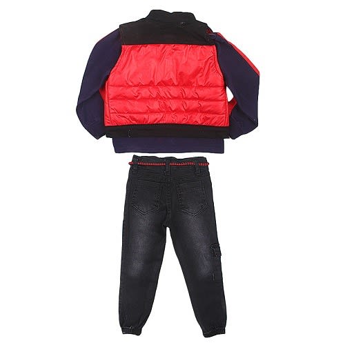 Buy 3 In 1 Boys Jeans Trouser With Inner Top And Red Jacket in Nigeria