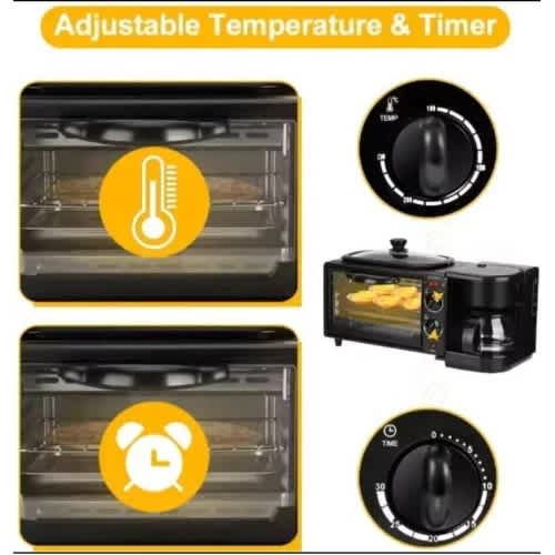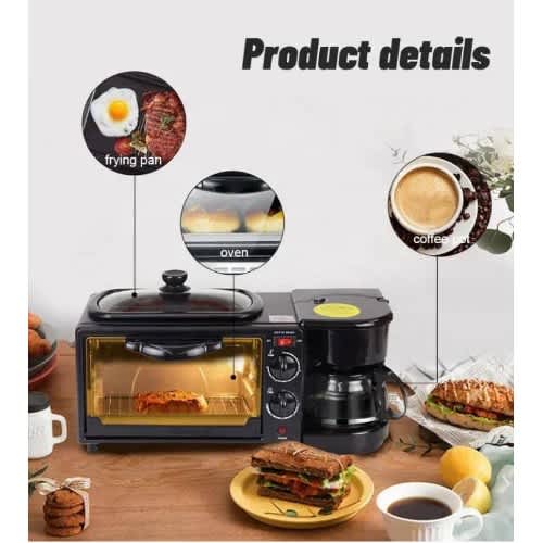 [Three-in-one breakfast machine]: electric oven (9L capacity), coffee machine (600 ml capacity), frying pan, free barbecue, enjoy on different days. Space-saving, compact and versatile design is perfect for any countertop.[Console]: Two easy-to-use dials to control the temperature (100 & deg;~230 & deg;C), built-in timer: 30-minute timer with accurate toast color preference and hold function for longer baking time Baking task.[Precise temperature control knob]: Easily pass my baking time to meet the demand of no food, no need to worry about time.[Oil-free inner tank/frying pan]: No dirt, corrosion resistance, easy to clean, non-oily, removable tray, easy to clean.[Anti-rust baking tray]: Made of high-quality stainless steel, easy to clean and resistant to corrosion. Cooking ability: This machine can easily make various snacks and meals.