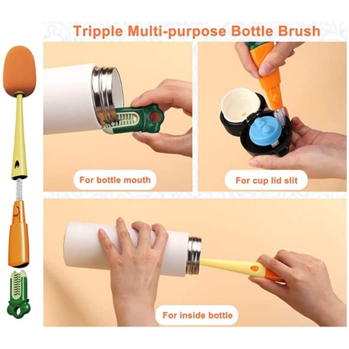 Baby Bottle Sponge Brush, Cup Lid Bottle Cleaner Brush, Detail Cleaning BrushLong handle design, suitable for long neck baby bottles, especially for baby bottles.triple cleaning modeEasy to clean