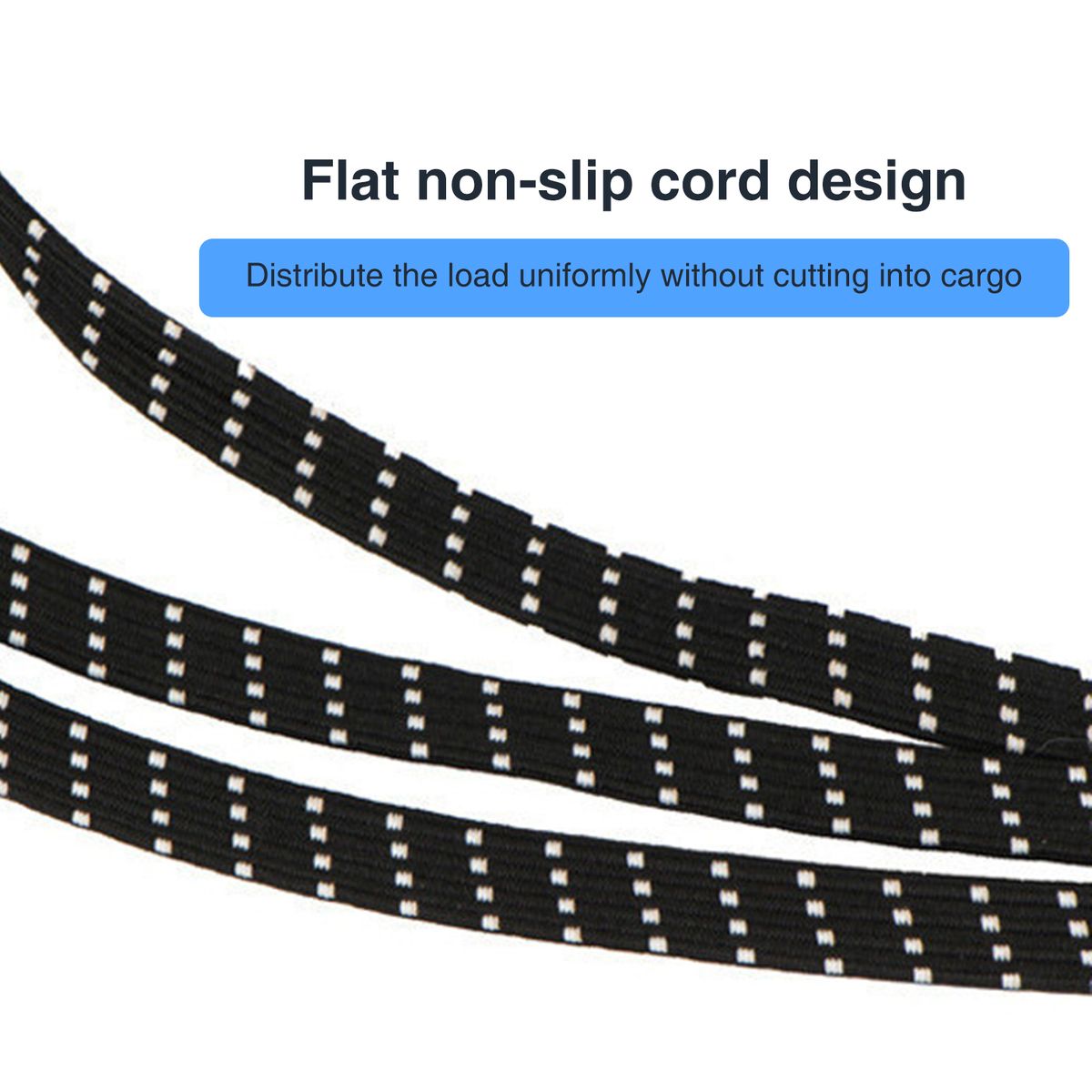 Flat cord design to distribute the load uniformly without cutting into cargo.
