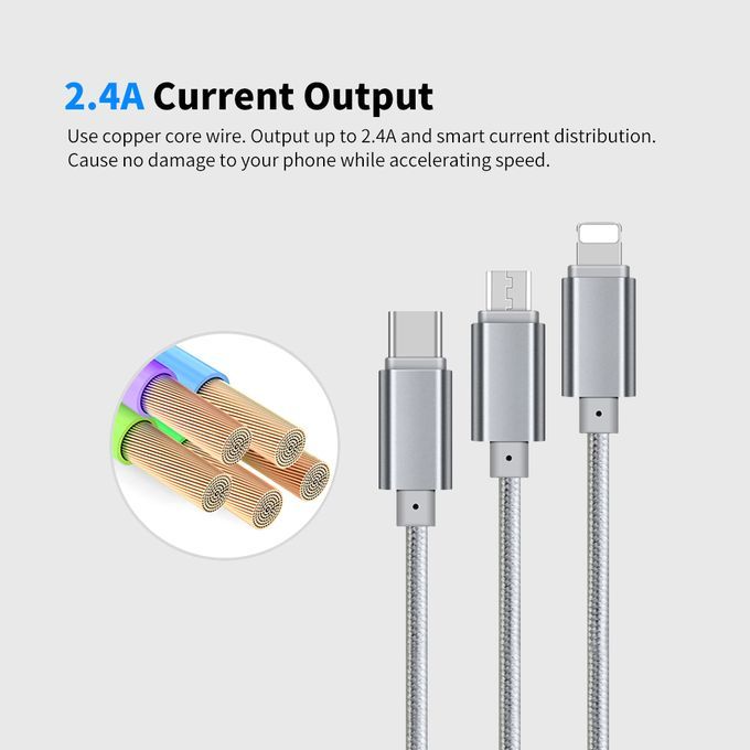 3 In 1 Cable Data Cable 2.4A With Micro USB/Type-c