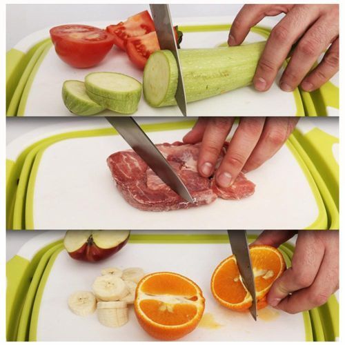Easy to use - Can be used as a cutting board after folding or vegetable washing basket and drain basket after opening. Integrated plug and drainer, simply twist plug to drain water.