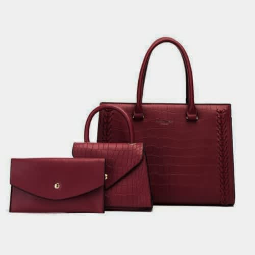 Buy 3 In 1 Ladies Cooperate Hand Bag - Wine Red in Nigeria