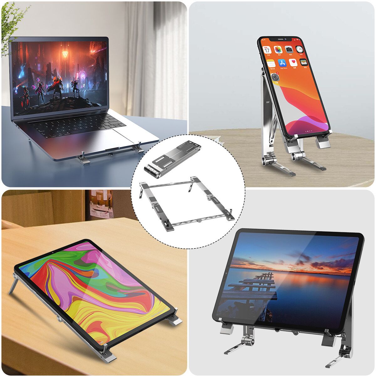 Similar ItemsDescription3in1 Portable Adjustable Foldable Tablet Stand Holder For ipad/laptop/phone Zinc Alloy