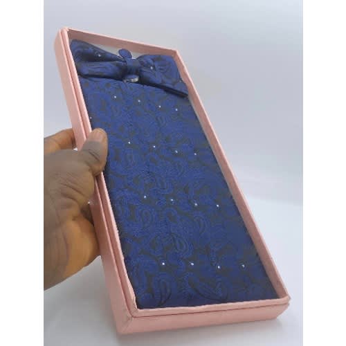 Buy 3-in-1 Luxury Navy Blue Men's Bow Tie- Cufflinks & Cummerbund Set in Nigeria