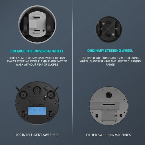 - Dual Rotating 4 Sided Brushes & ndash; The robotic floor cleaner has 2 sweeper brushes extend the reach of the vacuum and rotate to catch dirt and debris on open floor or along walls or edges. - Low Noise Design & ndash; Less than 50dB. Does not disturb sleeping babies, or irritate the pets. - Suitable for the floor, cement, ceramic tile, wooden floor, undercoat carpet, etc