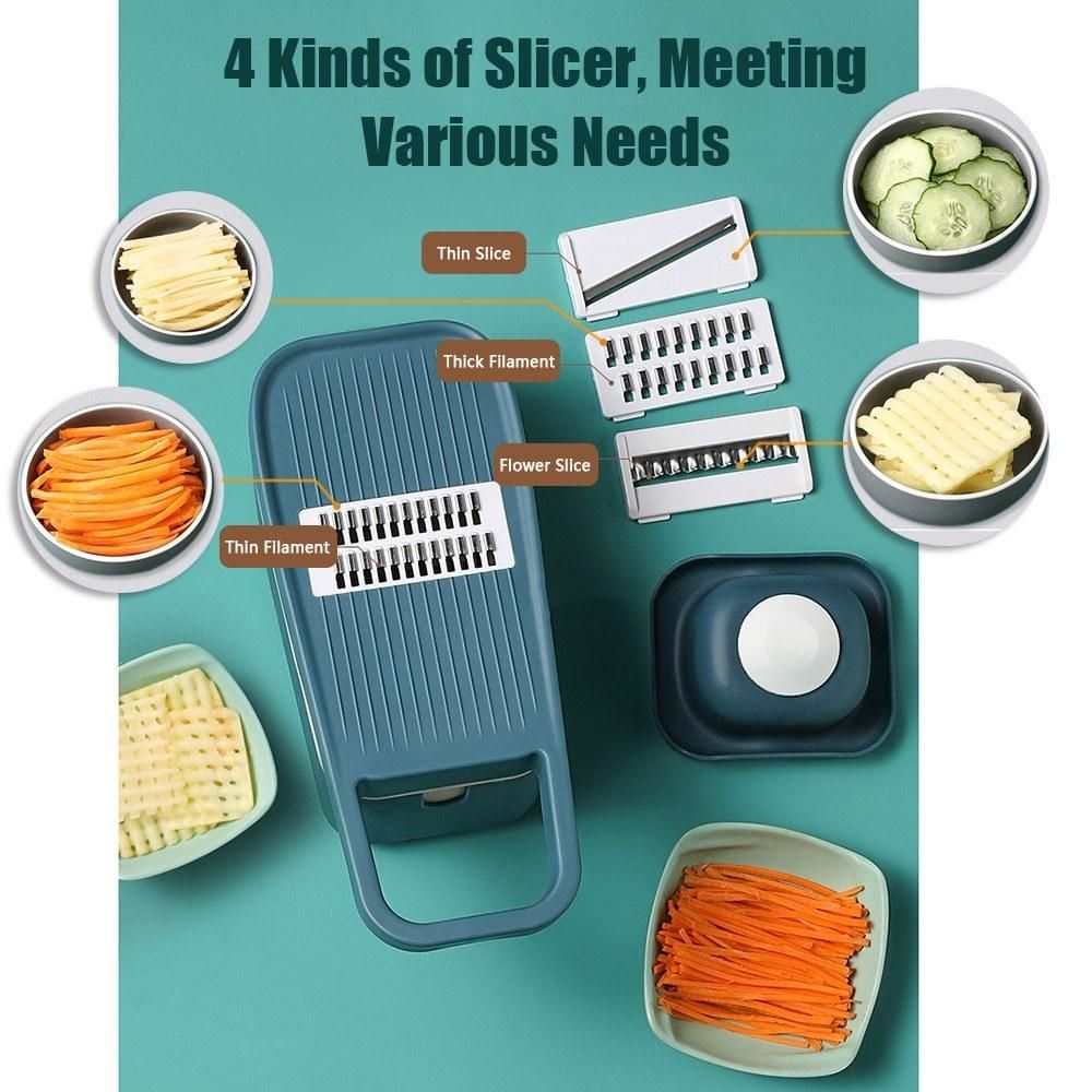 Buy 3-in-1 Multifunctional Vegetable Slicer with Drain & Storage Baskets 4 Kinds of Slicer Vegetables Cutter with Guard Potato Carrot Cucumber Filament Flower Slice Shredder Kitchen Supplies Tools in Nigeria