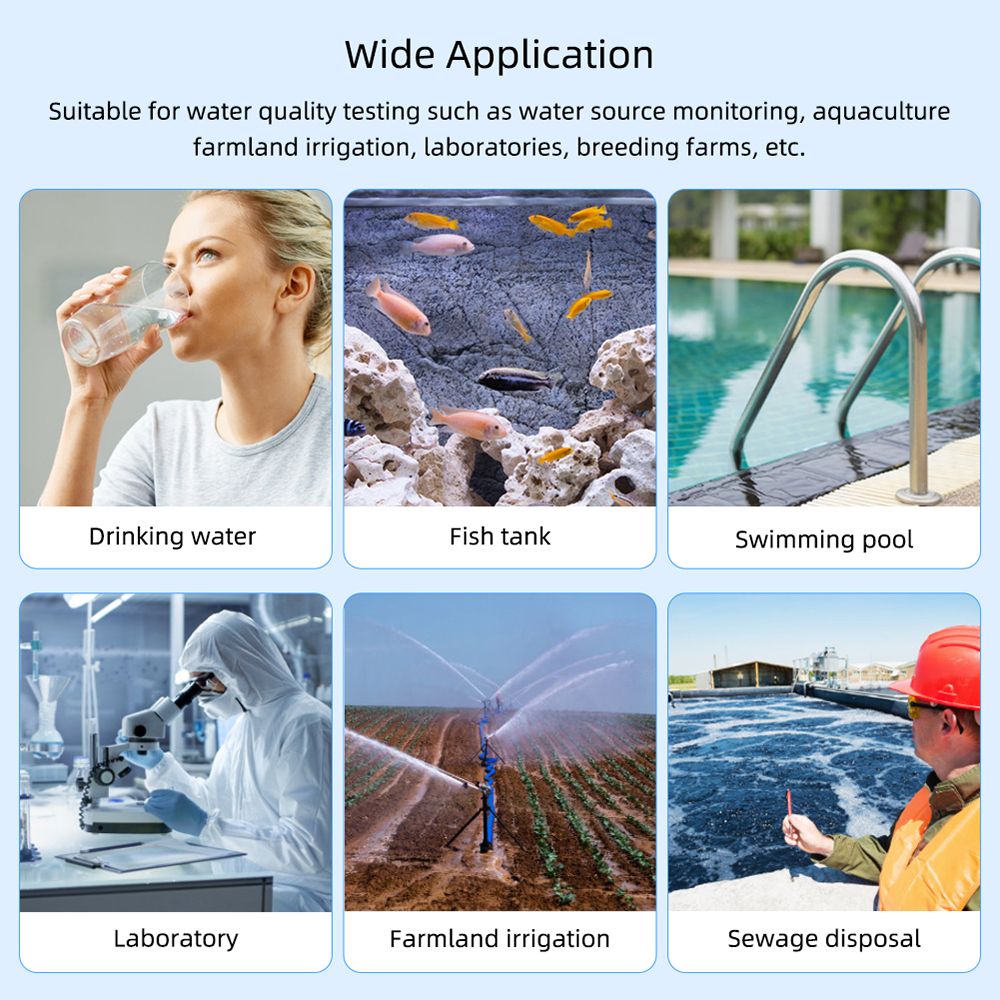 Widely used in all water quality testing, water purification applications, waste water regulation, aqua culture, hydroponics, laboratory and scientific testing, pools, ecology testing, colloidal silver, water treatment and more.