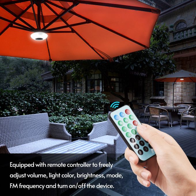 Equipped with remote controller to freely adjust volume, light color, brightness, mode, FM frequency and turn on/off the device.