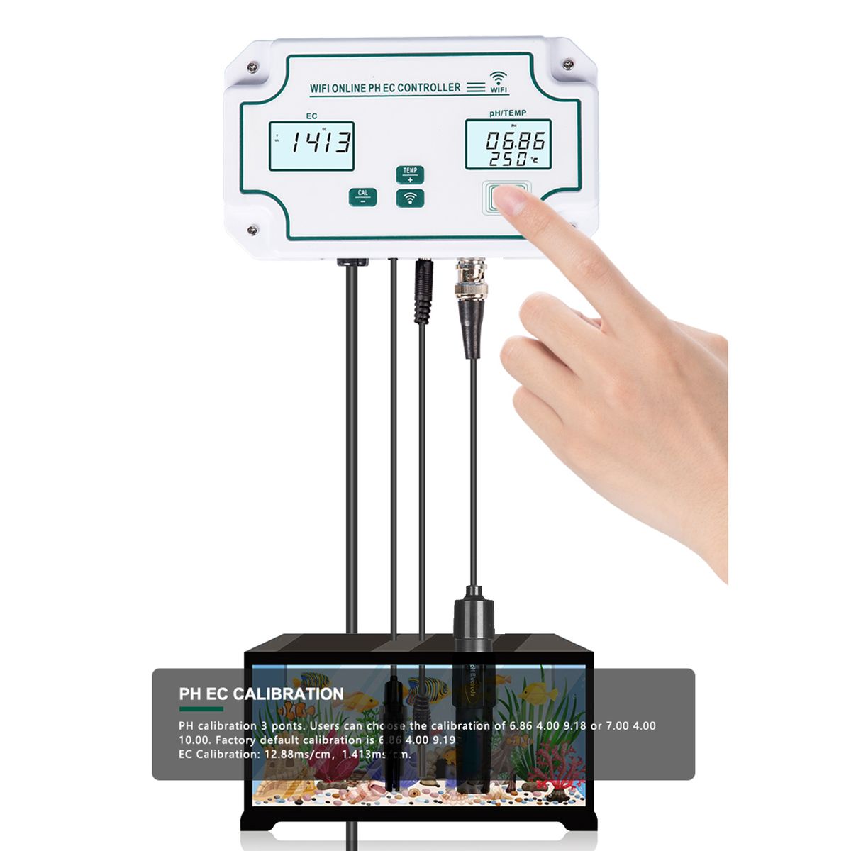The WiFi online pH EC controller allows you to real time monitor the pH and EC via your smartphone on the APP(for free), it is compatible with ios and Android system, perfect for 24 hours online monitoring.