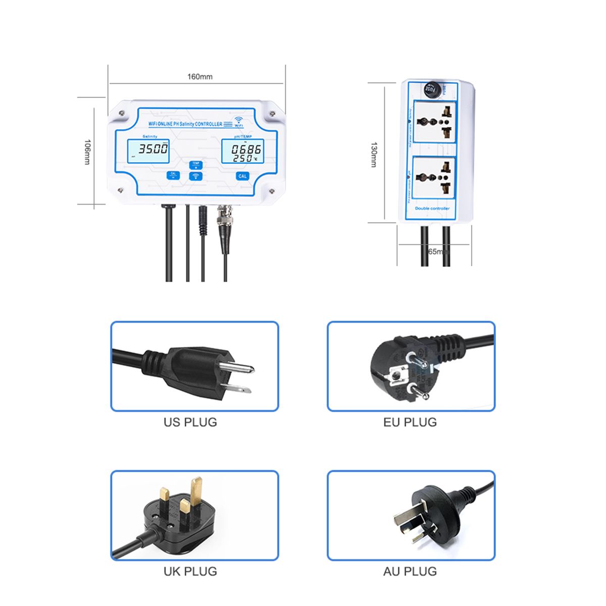 With relay output power socket, you can control the pH amp; salinity value according to your requirements.