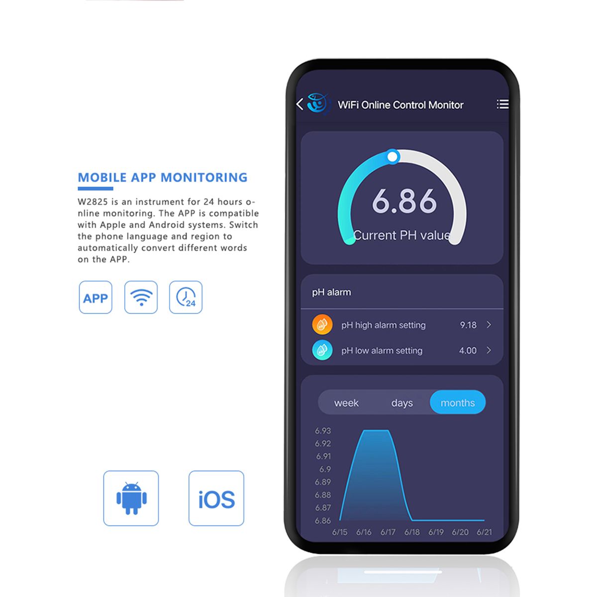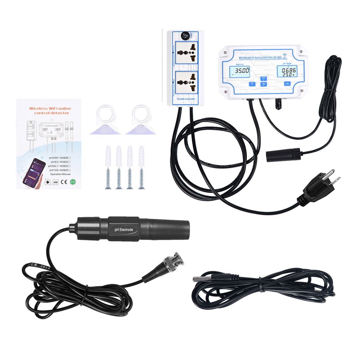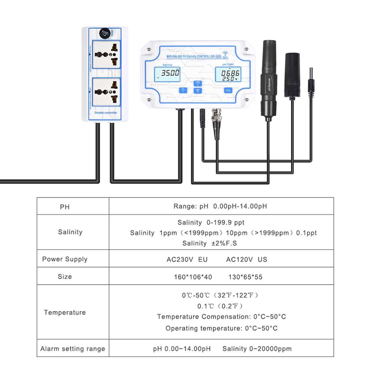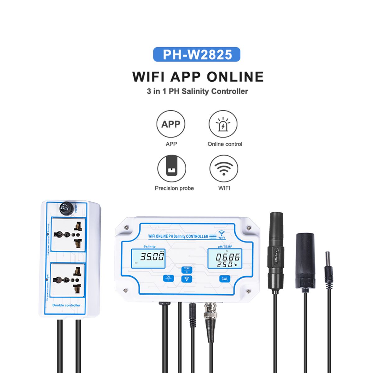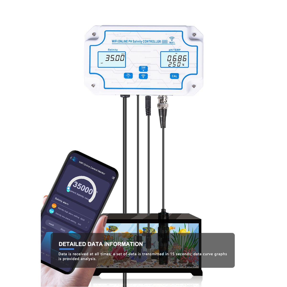 The WiFi online pH salinity controller allows you to real time monitor the pH and salinity via your smartphone on the APP(for free), it is compatible with ios and Android system, perfect for 24 hours online monitoring.