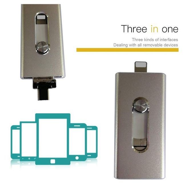 3-in-1 push-and-pull design: Lightning connector for iPhone/for iPad, and micro USB connector for Android series, and USB 2.0 connector for computer, easy and speedy transfer.