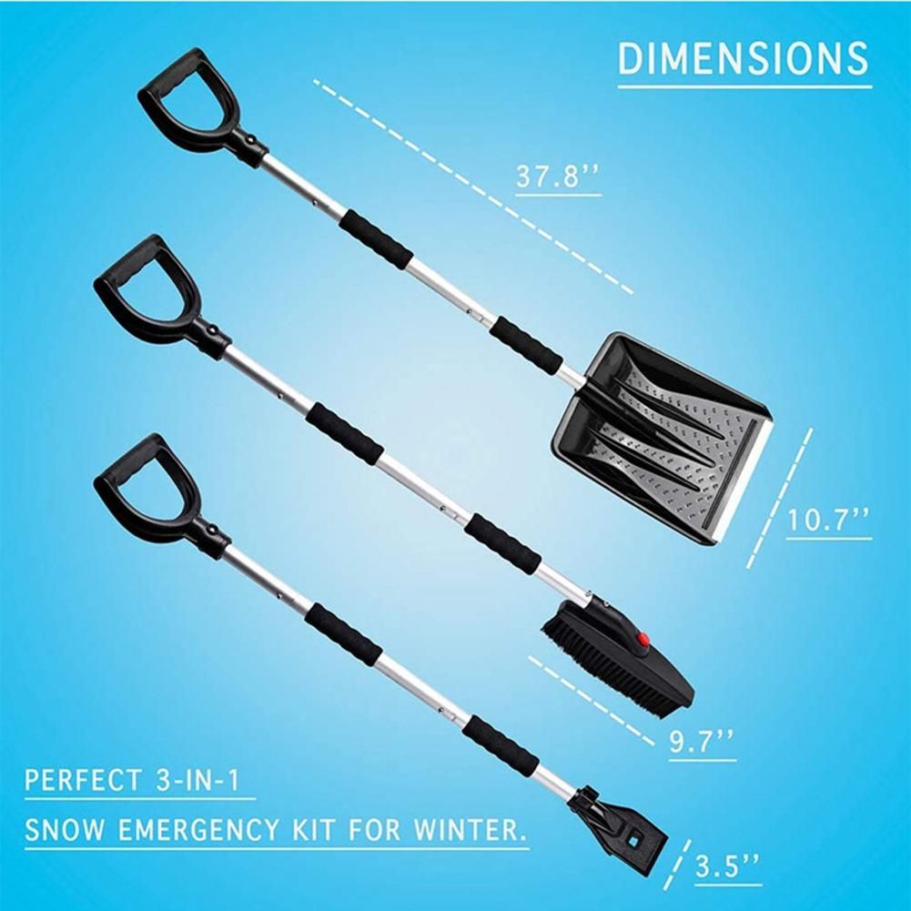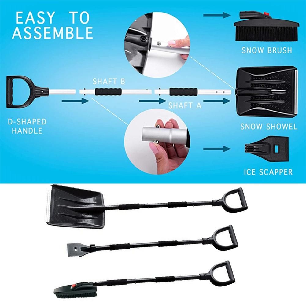 [3-piece foldable design, ultra-compact, lightweight, and easy to assemble] The lightweight snow-clearing car kit can be divided into 3 pieces for easy storage in the vehicle or garage. The shaft is made of heavy-duty aluminum, which is strong but light in weight. Each part can be easily interchanged through the design of this tool set. This is very suitable for use in , trucks, backyards and camping.