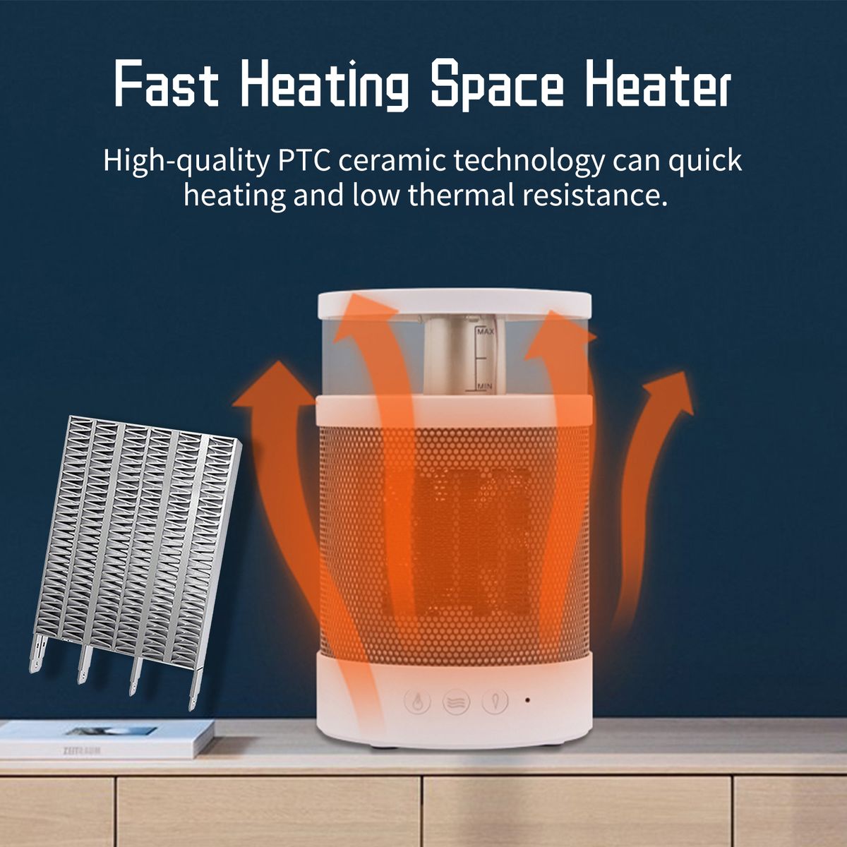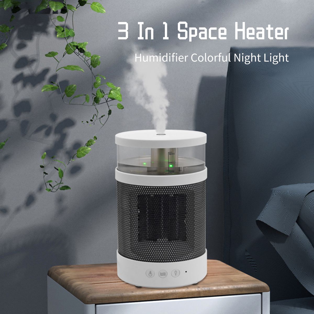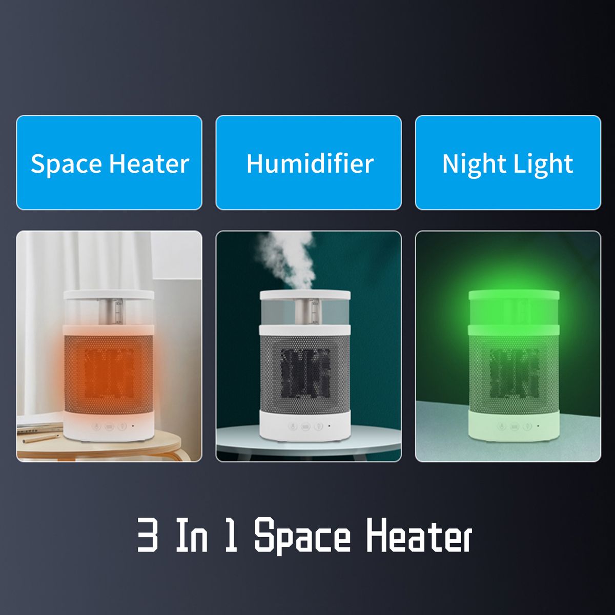 [3 In 1]Small space heater support 3 modes of humidifier, 2 brightness of colorful night light, and 3s fast heating warm wind, providing you instant warmth.