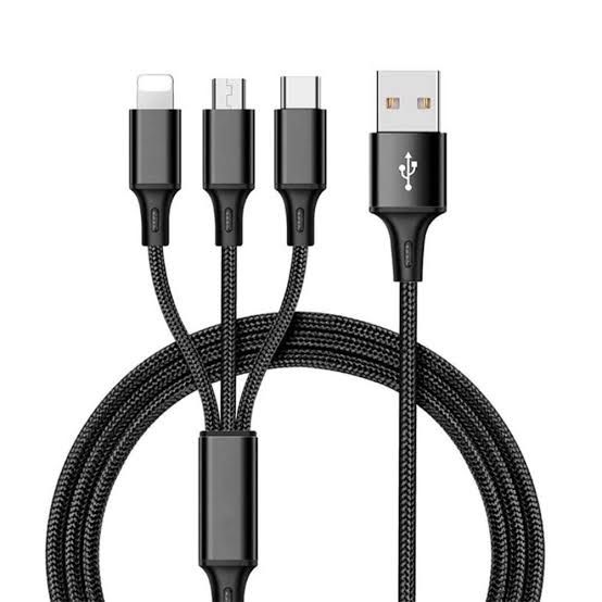 - USB charging cable with 3 different plugs: USB-C / micro USB / Lightning