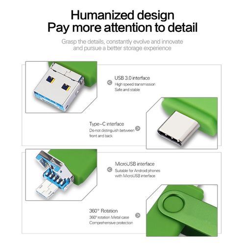 3-in-1 design with a type-c port ,micro usb port and USB 3.0 connector,easy for data transmission between Android smart phone and computers.