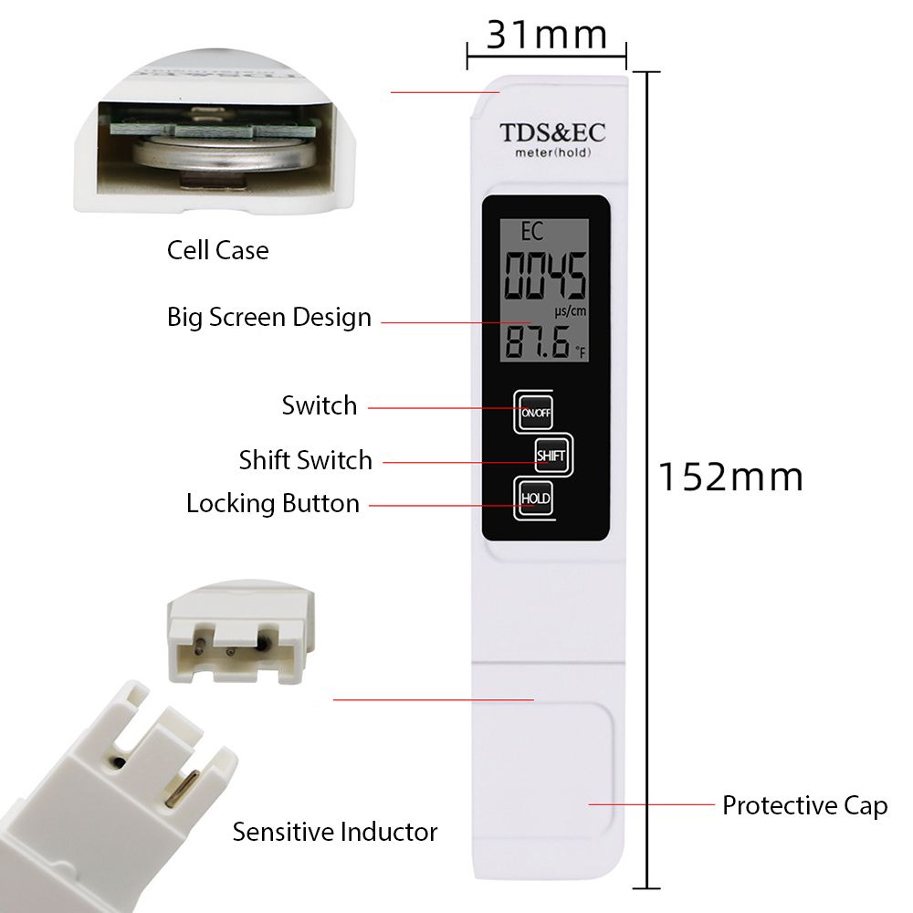 3 in 1, EC/ TDS/temperature measurement, reading locking function, one price for multiuse.