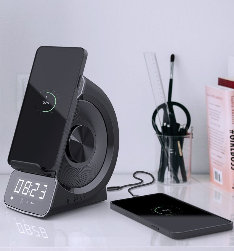 Just put the mobile device on the wireless charger connected to the power supply, and the charging can be easily completed. The charging process is simple and convenient, and it can also charge two mobile phones at the same time.