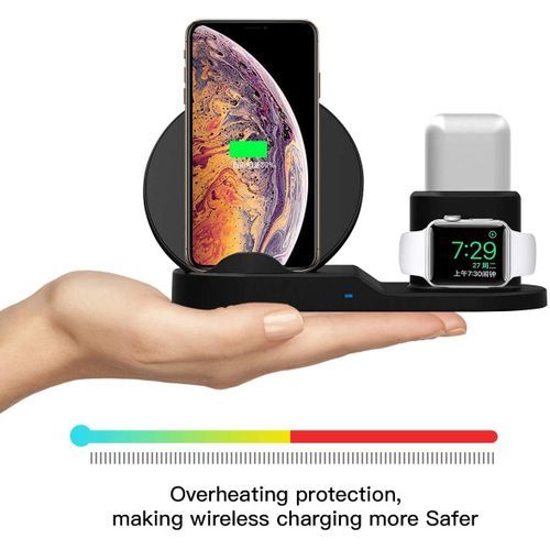 3 in 1 Fast Wireless Charger Dock Station Fast 3 in 1 Wireless ChargerOne of the most memorable gift you can give! This multifunctional wireless charger can recharge all Qi enabled phone, Watch and Pods cordlessly at the same time. 3 devices just need 1 wireless charger!Please note: we provide a 10W QC fast charging adapter.Versatile Viewingyou can keep track of work and personal messages in portrait mode, or switch over to landscape to enjoy videos while charging.CompatibilityBuild-in Watch Magnetic Charger, compatible Apple Watch Series 1/2/3, compatible with pods charging. Compatible with all Qi-enabled devices. support, Samsung Galaxy S9/S9 Plus/Note 8,iPhone XS/Xs Max/XR/X/8/8 Plus. EASE OF MIND. Built-in protection for over charging, overheating and short-circuit allowing your precious devices to charge safely. You love your devices, and staying connected is important, never wake up to dead or damaged devices ever again.UNIVERSAL COMPATIBILITY.Phone Charger has been tested extensively to work with Max and Max Pro variants of iPhone 12 / 12 Pro / 12 Pro Max iPhone 11/11 Por / 11 Por MAX / Xs/Xs Max/XR/X/8/8 Plus and Samsung models up to S20 Ultra 5G for horizontal and vertical charging. Compatible with Watch 6, 5, 4, and 3, and charges pod 1, 2 and Pro by lightning stand.WATCH, HOT WATCH!!! The Apple watch charger is equipped with a temperature sensor to put an end to thermal damage from overheating during charging. Tested with iWatch 6, 5, 4 and 3, your watch is safe THE ONLY APPLE CHARGER YOU WILL EVER NEED. Our Wireless charging station for apple products is equipped with our own QC 3.0 smart adapter enabling charging through regular phone case up to 3mm. Fuss around with wrong adaptors and cables no more, use your Apple Charging Station right out of the box for all your Apple devices.Whether its that charging nightstand for room, or that Apple wireless charging station for the the office, Rsyner's sleek and innovative design blends in anywhere, while quietly charging your favorite devices. Add to cart now, and never worry about charging again.Note: Please use the QC2.0 / QC3.0 adapter for the best charging experience.For Apple Watch Series 1, which is not availableFor Apple Watch Series 2, 3 (charge time 2-3 hours)For Apple Watch Series 4.5, the latest system version (charge time 4-5 hours)Due to the cooling function of the latest system of Apple Watch, the charging of the watch will be broken! After that, it will charge normally!