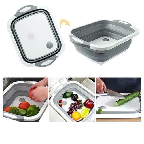 durable, it will not crack, warp or split, giving you many years of use. Because it is non-porous, the cutting board is gentle on knives and does not harm or dull blades This Product can be used as a vegetable/fruit/meat/poultry/fish cleaning basket, chopping/cutting board ideal for cutting, slicing and chopping, a foldable tub for household needs such as washing dishes and also for icing beverages or camp site cleanup PREMIUM QUALITY: Made from high-quality, BPA-free, PP plastic and siliconized rubber, the smart container is antimicrobial,