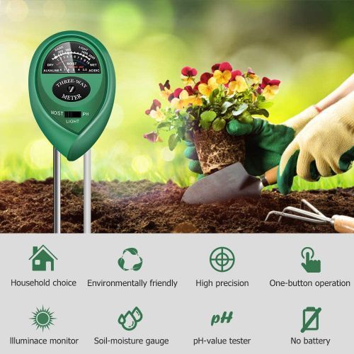 Specifications: Color: Green PH Range: 3.5-8PH ( 3.5-7 Acid, 7-8 Alkaline) Moisture Range: 1-10 ( 1-3 Dry, 3-7 Nor, 7-10 Wet) Relative Light: 0-2000LUX ( 0-200 Low, 200-500 Low+, 500-1000 Nor, 1000-2000 High) Probe Tip Size: 10mm×4mm×4mm / 0.4"×0.16"×0.16" Probe Length: 180mm / 7.09" Product Dimension: 255mm×62mm×36mm / 10.01"×2.44"×1.42" Net Weight: 58g / 2.05oz How to used Step 1: Clean the surface soil layer's all organic impurities which may affect the test results, such as the leaf or the root. Step 2: Clean the probe tip with wipes or abrasive cloth. Step 3: Insert the probe tip in the testing soil, the probe tip should LEVEL with root. Step 4: Reading the result when the value is stable Step 5: Testing it again on the different place of the testing soil, then calculate the average value. Note: If the testing value can't be stable, it is caused by the uneven density of soil, please kindly test it twice or three times again to get a average value Package Included: 1×3-in-1 Soil Test Meter