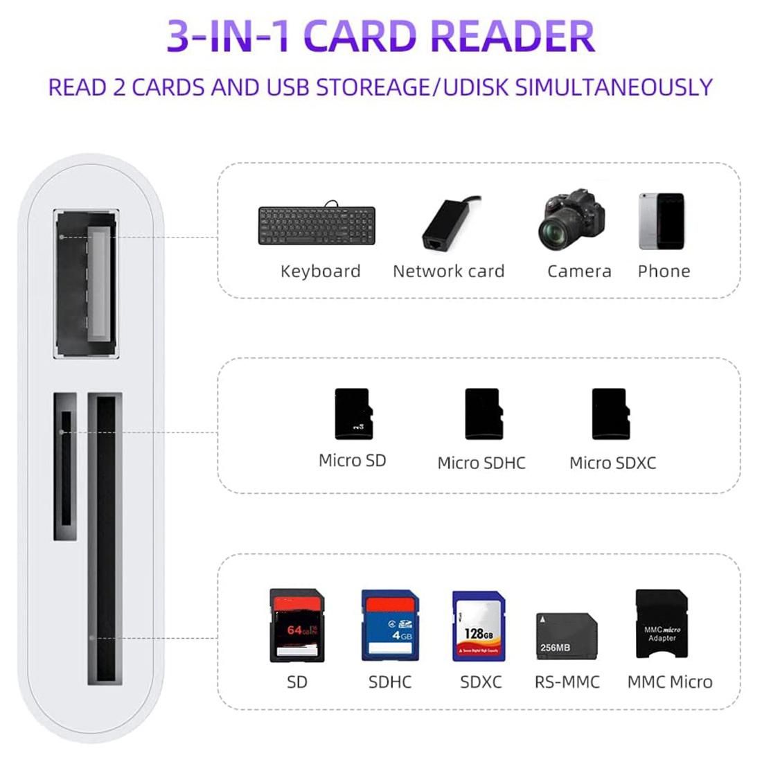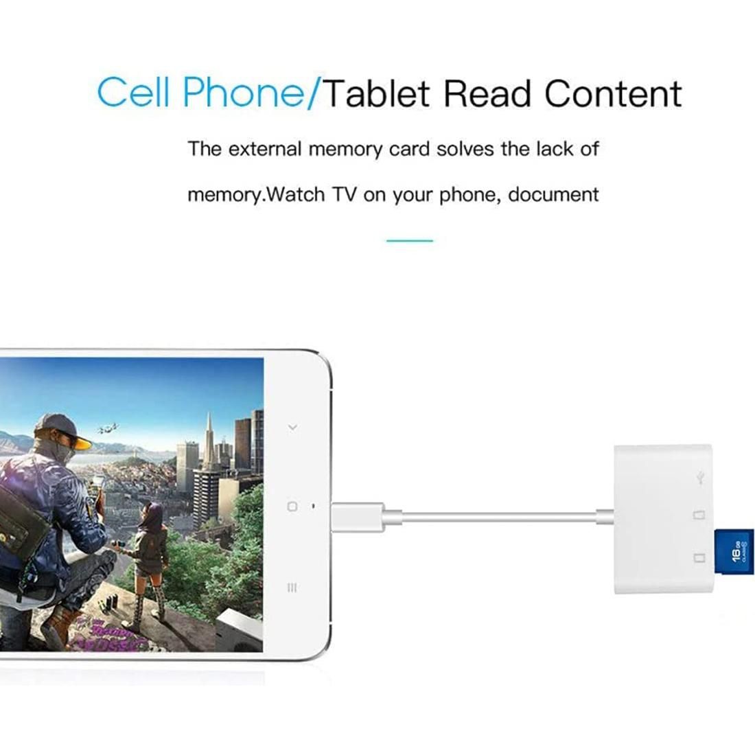 With this micro-SD card adapter, you can connect USB peripherals such as USB flash disk, mouse, keyboard, card reader, camera, printer, hard drive and many other USB connected devices.