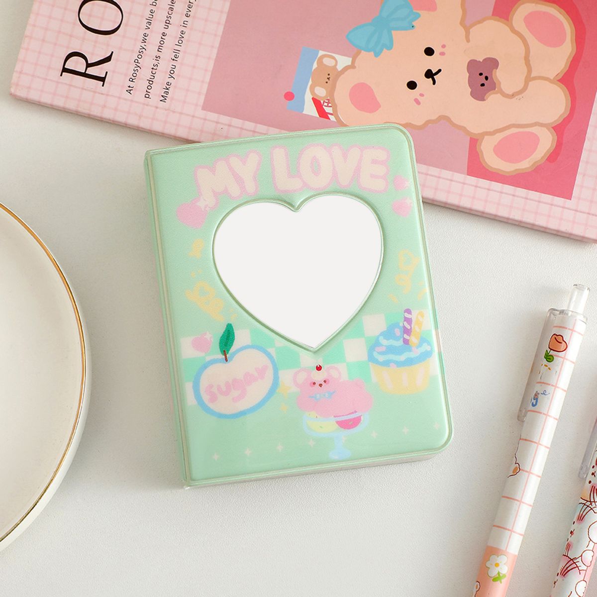 The photo album looks cute and unique with a cartoon style and hollow heart pattern. Featuring 40 pockets, it can contain 40 photos or cards.