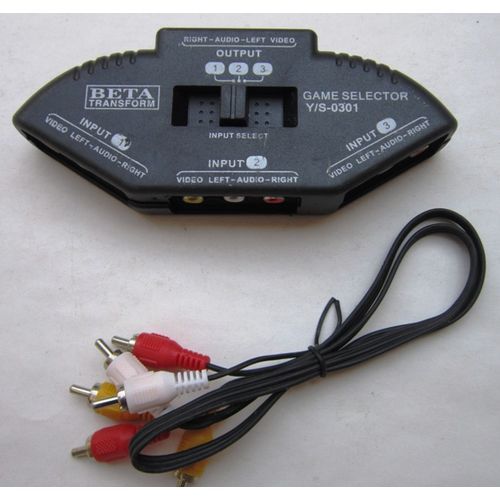 Connect 3 video devices (such as XBOX DVD PS2) to the "Input1, 2, 3" connectors while your TV to the "Output" connector with the offered RCA cable. Then, at once you want to use one of the three connected Video devices, just pull the switch to the relative "Output 1, 2, 3" rather than discommodiously reconnect the video devices again and again.3-way AV Audio Video RCA Switch Box Selector Splitter For XBOX DVD PS2 PS3.Allow your TV Set to be connected with 3 video devices, such as XBOX, DVD, PS2.Convenient switch control-just pull the switch point at the relative AV input 1, 2, 3,easy installation and operation.No extra power supply and software drive needed.Comes with one 3to3 male to male M/M RCA cable.Connect 3 video devices (such as XBOX DVD PS2) to the "Input1, 2, 3" connectors while your TV to the "Output" connector with the offered RCA cable. Then, at once you want to use one of the three connected Video devices, just pull the switch to the relative "Output 1, 2, 3" rather than discommodiously reconnect the video devices again and again.3-way AV Audio Video RCA Switch Box Selector Splitter For XBOX DVD PS2 PS3.Allow your TV Set to be connected with 3 video devices, such as XBOX, DVD, PS2.Convenient switch control-just pull the switch point at the relative AV input 1, 2, 3,easy installation and operation.No extra power supply and software drive needed.Comes with one 3to3 male to male M/M RCA cable.Connect 3 video devices (such as XBOX DVD PS2) to the "Input1, 2, 3" connectors while your TV to the "Output" connector with the offered RCA cable. Then, at once you want to use one of the three connected Video devices, just pull the switch to the relative "Output 1, 2, 3" rather than discommodiously reconnect the video devices again and again.3-way AV Audio Video RCA Switch Box Selector Splitter For XBOX DVD PS2 PS3.Allow your TV Set to be connected with 3 video devices, such as XBOX, DVD, PS2.Convenient switch control-just pull the switch point at the relative AV input 1, 2, 3,easy installation and operation.No extra power supply and software drive needed.Comes with one 3to3 male to male M/M RCA cable.