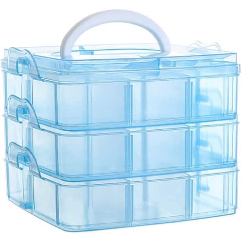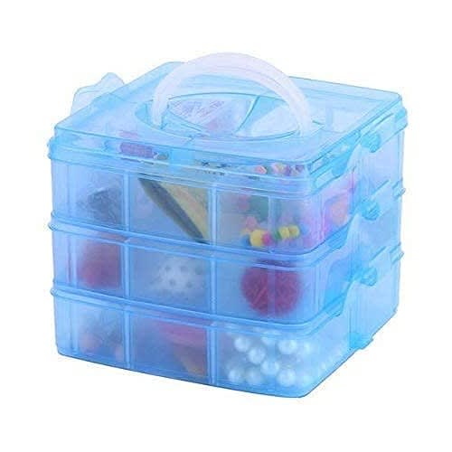 Buy 3 Layer Detachable 18pcs Grid Jewelry Box With Handle & Transparent-blue in Nigeria