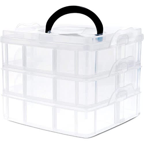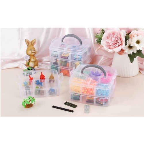 Buy 3 Layer Transparent Detachable 18pcs Grid Jewelry Box With Handle - White in Nigeria