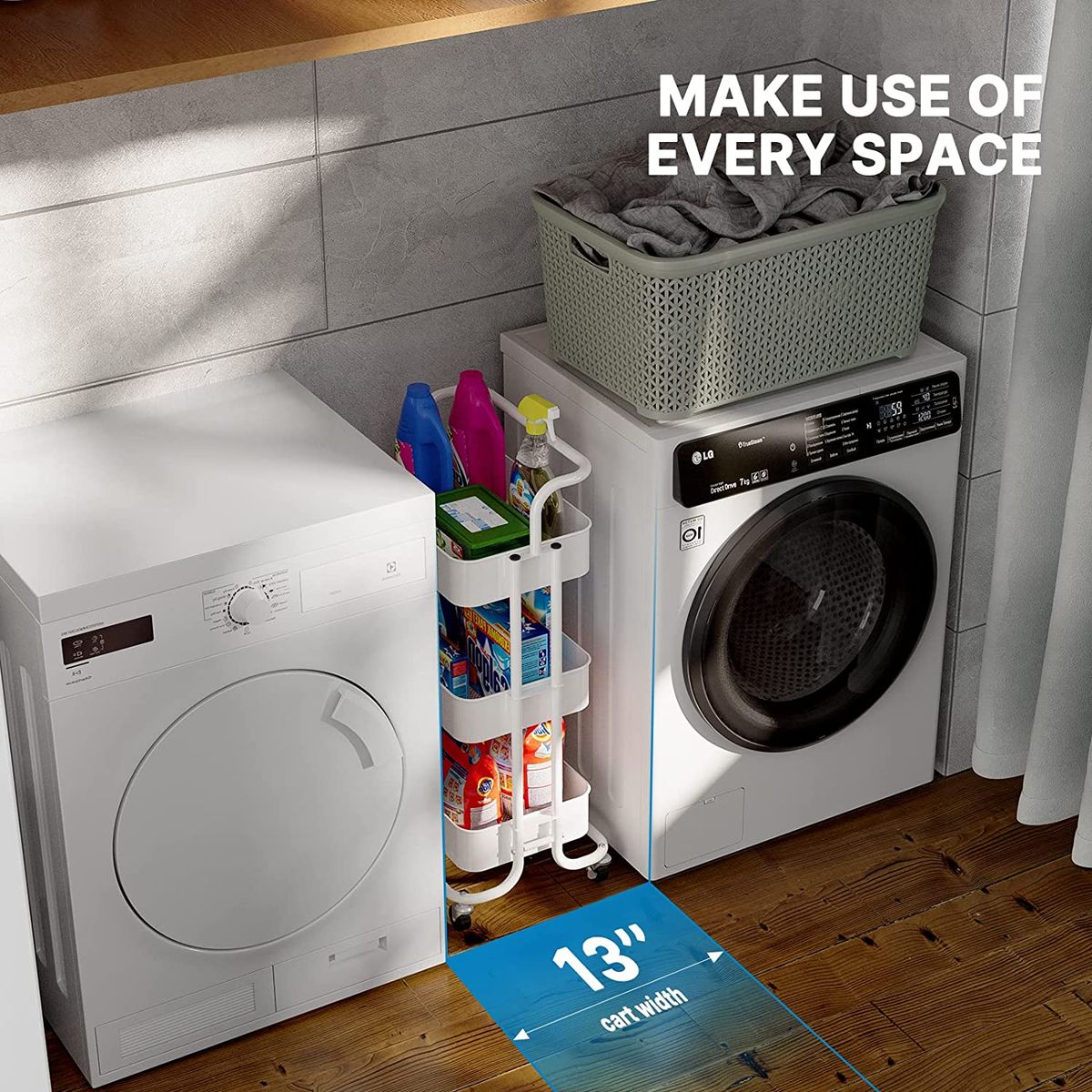 3 levels white organizer,ganizer for every place in the housegood plastic4 wheels for easy movement 2 hands to easy moving provided in spacehigh quality