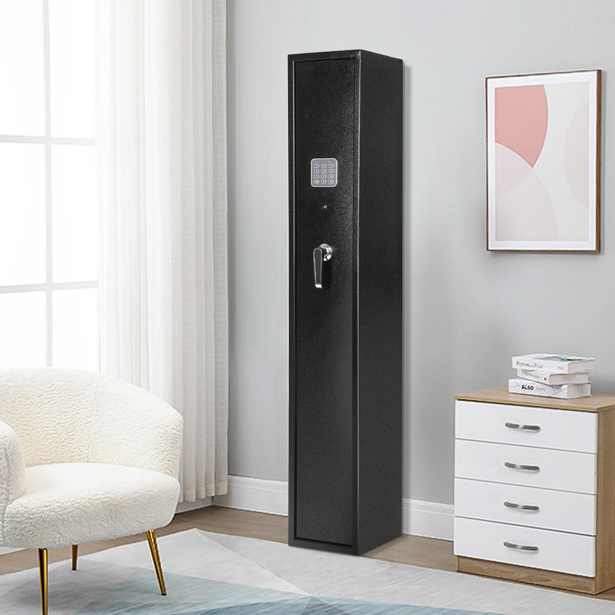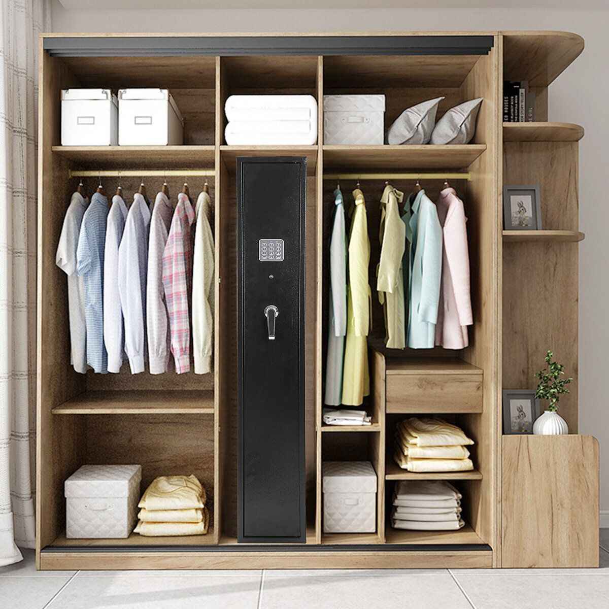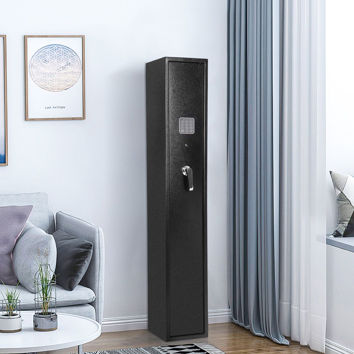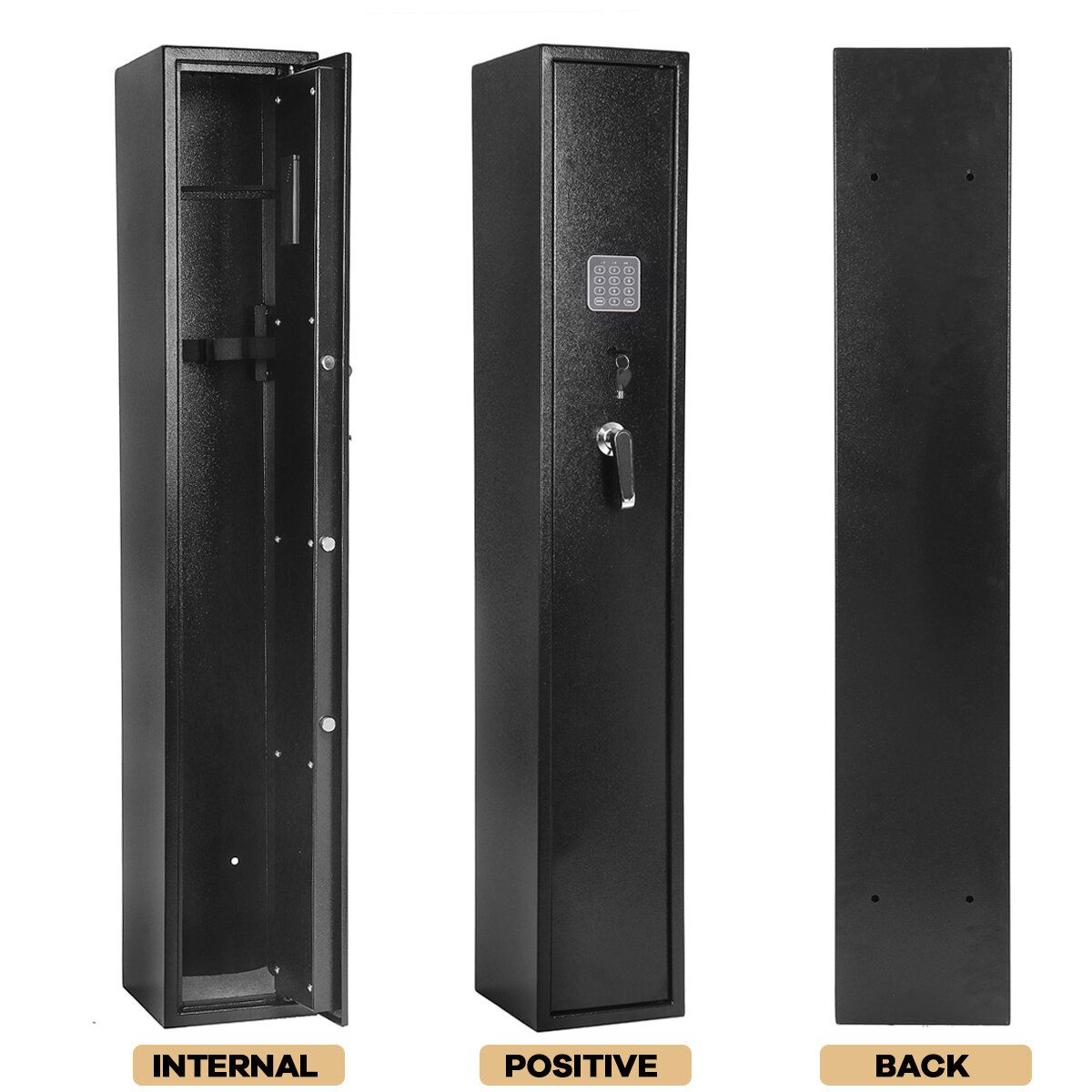 - The gun safe has 3 rack positions for up to 5 gunss. Larger space and better structure design allow you to store more guns.