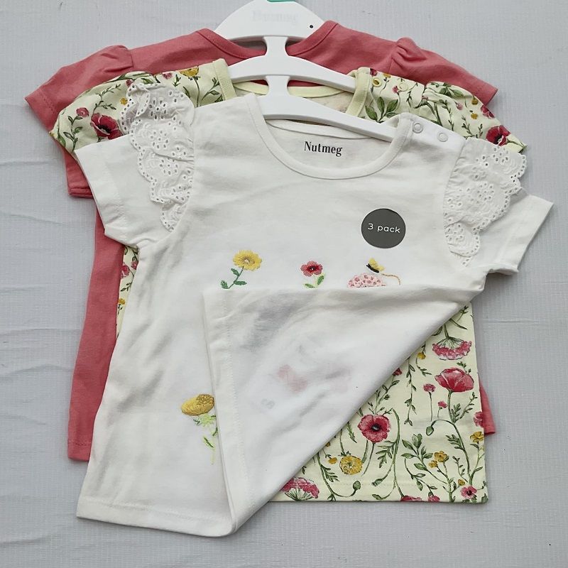 This 3-pack of pretty t-shirts from morrissons features three different designs 3 pcs t shirt in colorful vibrant prints. Made from soft cotton for all-day long