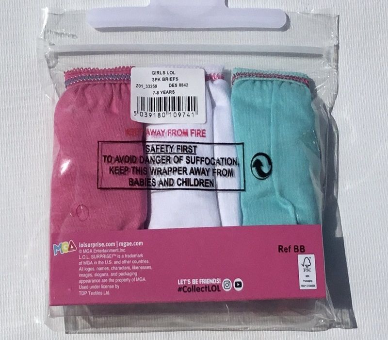 Presenting LOL girls underwear in sizes 3 to 10 years.