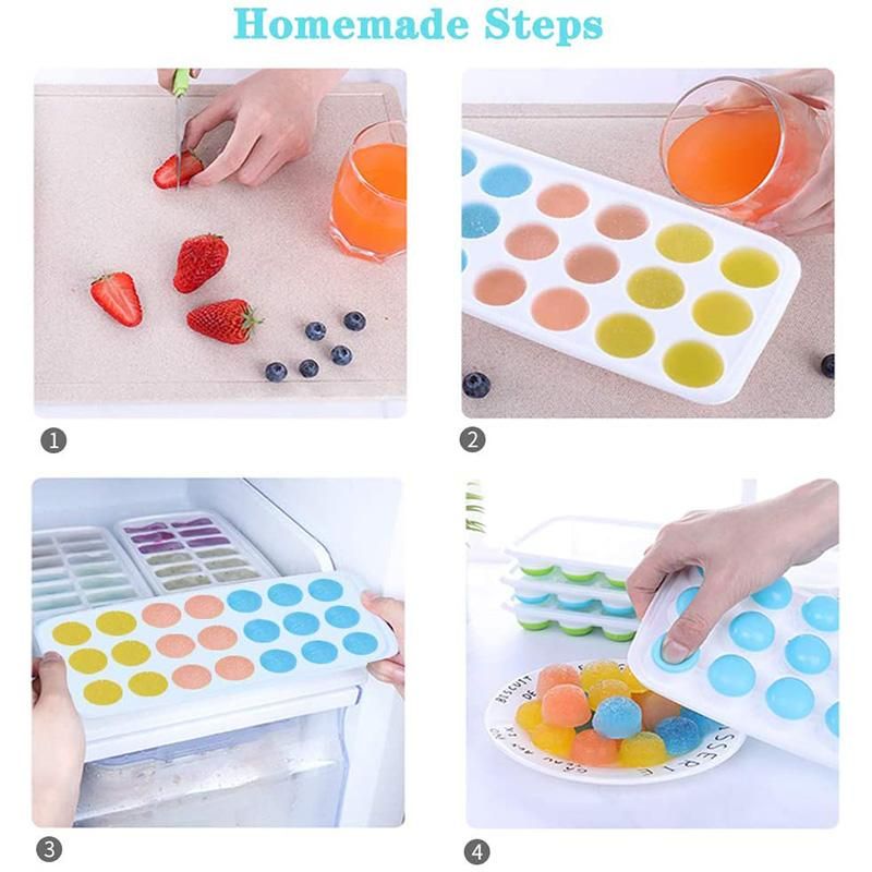 Multi-Purpose Use:This ice cube trays can use not only water, but also fresh juices (lemon, lime, pineapple, etc.), drinks, red wine, etc. so you can customize your favorite freeze drinks, you can also use these ice trays to freeze homemade Baby food,homemade is way more nutritious, enjoy the fun they bring to you