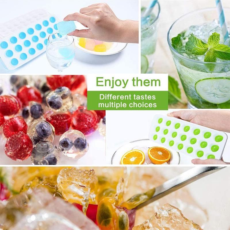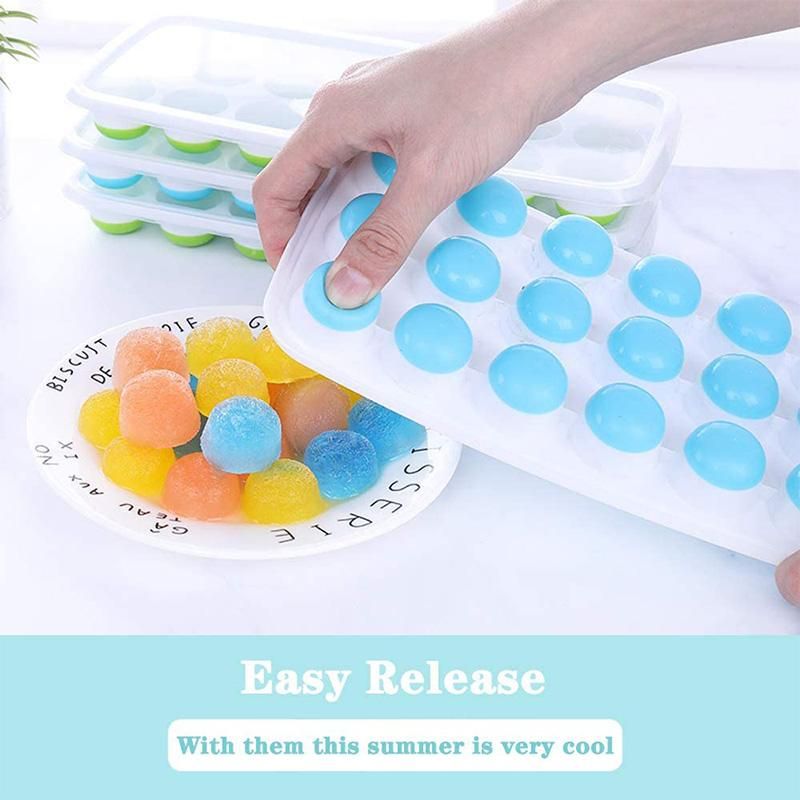High Quality Safe Material:This 3 ice trays very safety and durability,each ice tray makes 21 nice-sized hemispherical ice cubes for a total of 63