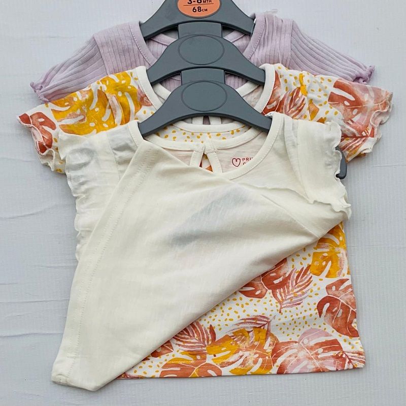 This 3-pack of pretty t-shirts from morrissons features three different designs 3 pcs t shirt in colorful vibrant prints. Made from soft cotton for all-day long