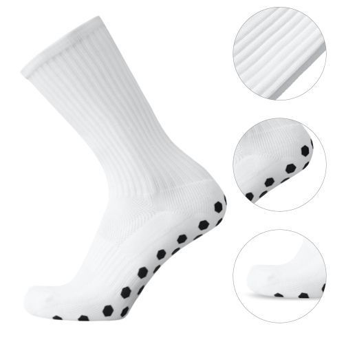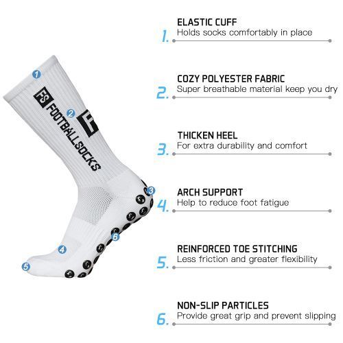 Features:Breathable blend material quickly wicks moisture away to keep your feet dry and cool.Our socks are made from synthetic material that is breathable, moisture-wicking and comfortable. With anti-slip soles, you can stay stable and won't slide during exercises. The good elasticity makes the socks fit for sizes from 39 to 44, suitable for both men and women. The soccer socks are great choice for people who love playing football, tennis, cycling, running, and other sports.