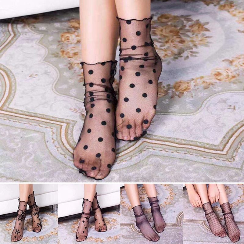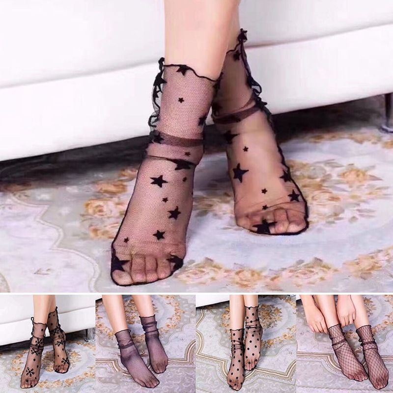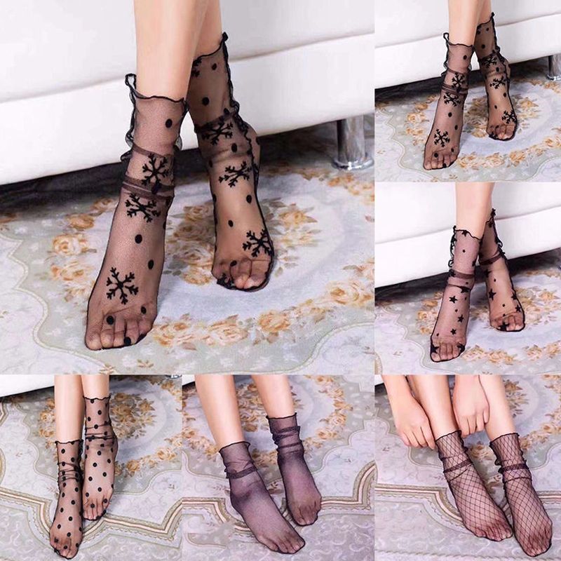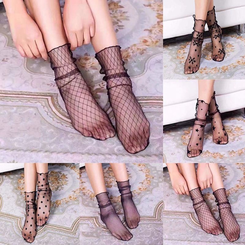 3 Pairs Lace Socks Fishnet Embroidered High Fish Women Net Socks Ankle Short Socks Ruffle Sexy