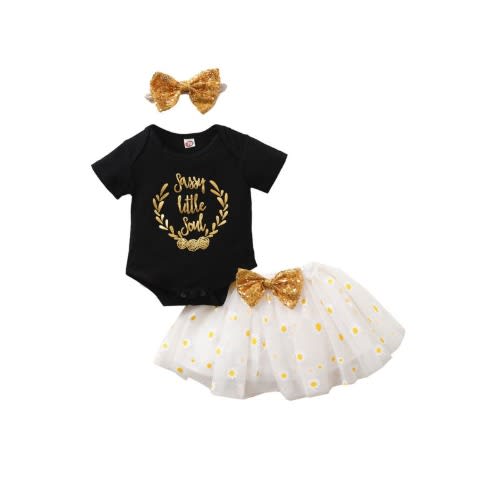 Buy 3 Pcs Babygirl Onesie Daisy Flower Mesh Sequins Skirts With Headband Set in Nigeria