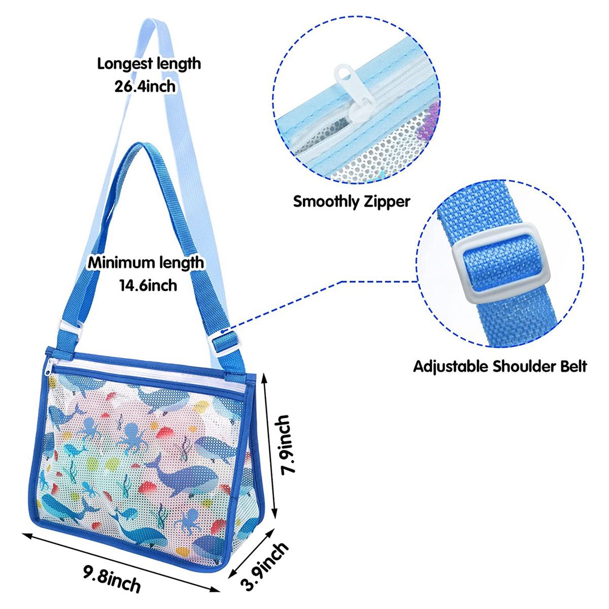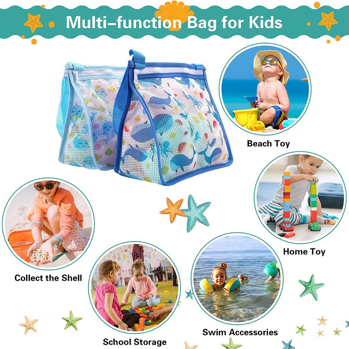 Portable&Convenient---The beach shell bag can be folded into a small size,takes up a small space,and can be easily stored in handbags,drawers and suitcases.This beach toy bag can store toys and can be hung on the wall at home.