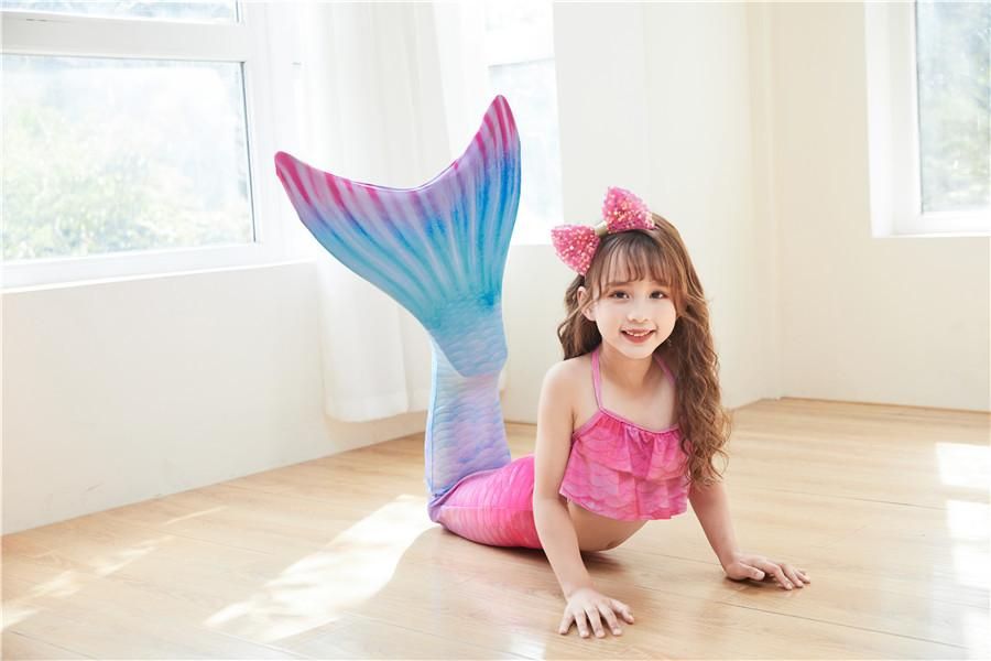 3 Pcs Girl's Swimsuit Mermaid Tails for Swimming Bikini Set